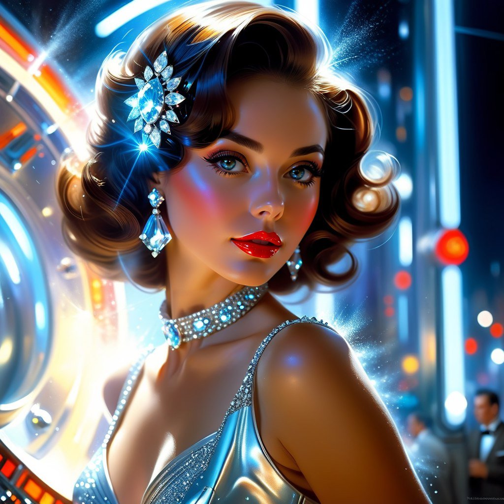 Вероника Кастро: роскошь, эмоции и сияние бриллиантовой пыли в артистичном стиле Винсента Ромеро Ремеро - Пример генерации нейросети Stable Diffusion