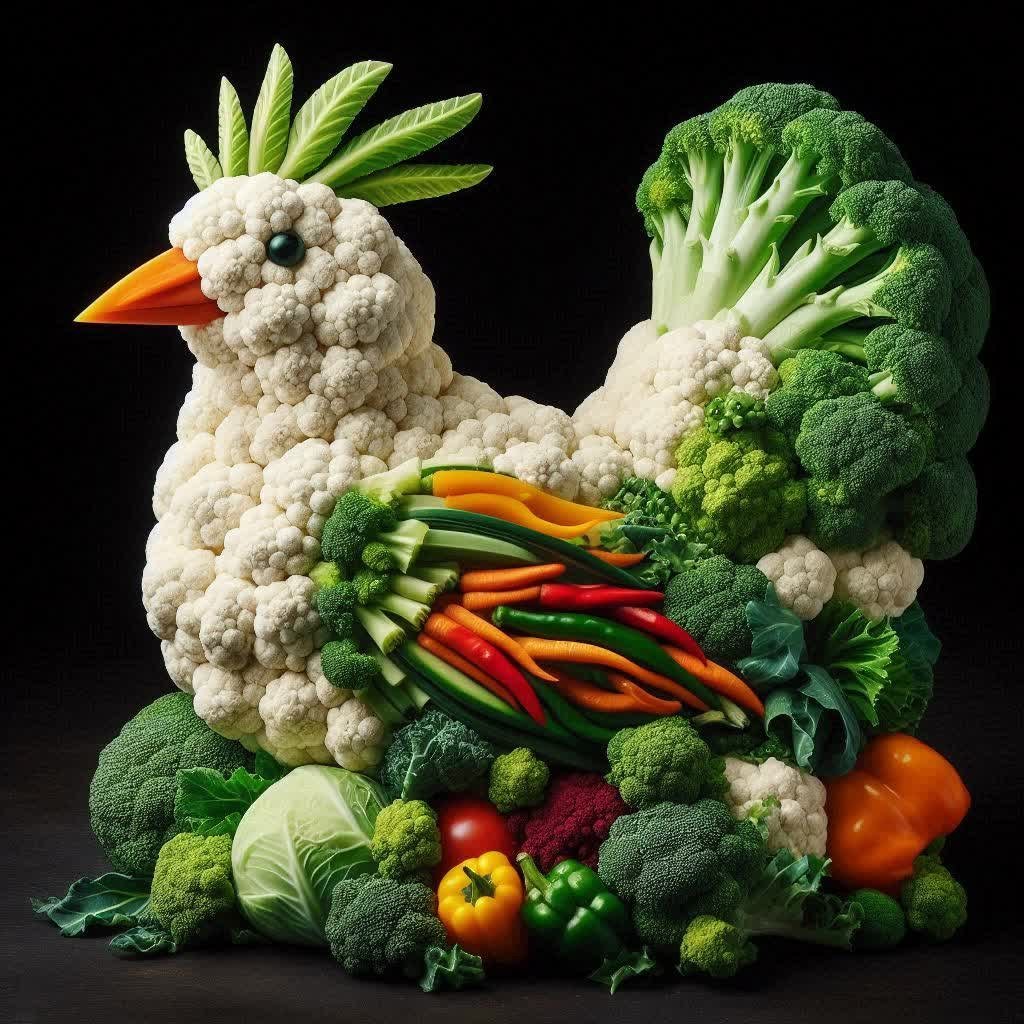Птица из овощей: яркая и креативная композиция в современном стиле - Генерация в нейросети Dalle 3
