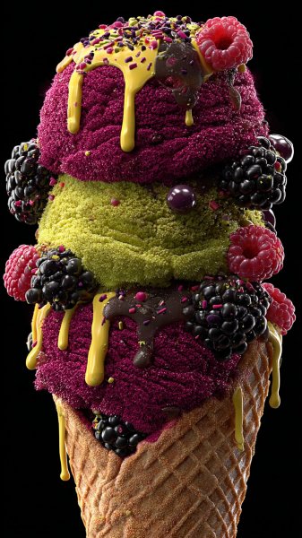 Яркая феерия вкуса и цвета захватывает взгляд! Насыщенный электрический фиолетовый переплетается с неоново-зеленым, создавая ощущение энергии и динамики. Сочные малинки падают в прозрачную воду, оставляя за собой брызги насыщенного алого – словно вспышки радости и свежести. Детализированный кадр демонстрирует аппетитные текстуры разноцветных мармеладных конфет крупным планом, окруженных разбросанными ягодами на фоне глубокой темноты. Идеальное сочетание студийного освещения подчеркивает каждый оттенок и контур, делая изображение невероятно реалистичным. Этот фотореалистичный снимок в формате HD с HDR передаёт ощущение наслаждения и оживления, словно предлагая попробовать это восхитительное угощение. Кажется, что можно почувствовать прохладу воды и сладость ягод. Яркие цвета и игра света создают неповторимую атмосферу летнего настроения и беззаботности. Изображение излучает жизнерадостность и аппетитность, воплощая в себе идеальный десерт для истинных гурманов. Это настоящее произведение искусства, которое пробуждает воображение и дарит позитивные эмоции одним лишь взглядом