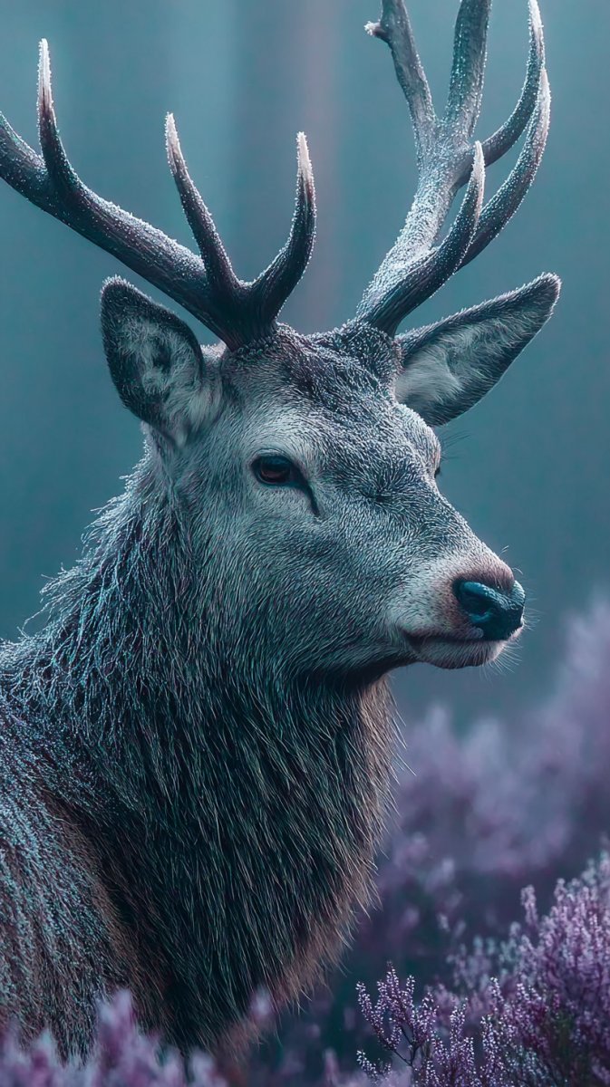 Могучий благородный олень с филигранными ветвистыми рогами, усыпанными сверкающими каплями росы под лучами утреннего солнца, запечатлён на фоне таинственного туманного пейзажа. Изображение отличается деликатной цветовой палитрой и мягким фокусом, создавая ощущение спокойствия и безмятежности. Картина передаёт всю прелесть дикой природы и богатство деталей окружающего мира. Влажный воздух добавляет изображению нереальности и загадочности, а рассеянный свет подчеркивает текстуру шерсти оленя и блеск рогов. Это настоящее созерцание красоты природы в её первозданном виде, момент тишины и гармонии, когда всё вокруг дышит жизнью и спокойствием. Изображение вызывает ощущение умиротворения и позволяет на мгновение забыть о суете повседневной жизни, погружаясь в мир дикой природы. Деликатное сочетание цветов и мягкий свет создают атмосферу волшебства и нежности, делая картину поистине завораживающей. Каждое движение, каждый отблеск света – всё продумано до мелочей, чтобы передать всю красоту и величие этого благородного животного в его естественной среде обитания