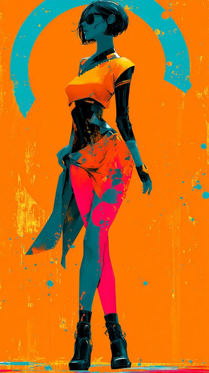 Яркая и энергичная иллюстрация современной девушки в неоново-оранжевых и фуксиевых тонах. Высокие ноги подчеркивают динамичность позы, а светящийся фон создает ощущение волшебства и нереальности. Стиль уличного искусства с красочными граффити акцентами добавляет изображению бунтарского духа и индивидуальности. Динамичная композиция передает уверенность и внутреннюю силу героини. Цифровое искусство воплощает в себе современную эстетику, сочетая яркие цвета и смелые линии. Кажется, будто она только что сошла с граффити-стены, излучая позитивную энергию и неповторимый стиль. Эта иллюстрация – настоящий взрыв красок и эмоций, отражающий дух свободы и самовыражения. В деталях прослеживается мастерство цифрового художника, создавшего живой и запоминающийся образ современной городской девушки. Она словно воплощение энергии мегаполиса, готовая к новым приключениям и свершениям. Использование необычных цветов и смелых техник делает эту работу уникальной и привлекательной для широкой аудитории любителей современного искусства и ярких визуальных образов. Работа выполнена в высоком разрешении с вниманием к деталям, что позволяет рассмотреть каждый штрих и оттенок