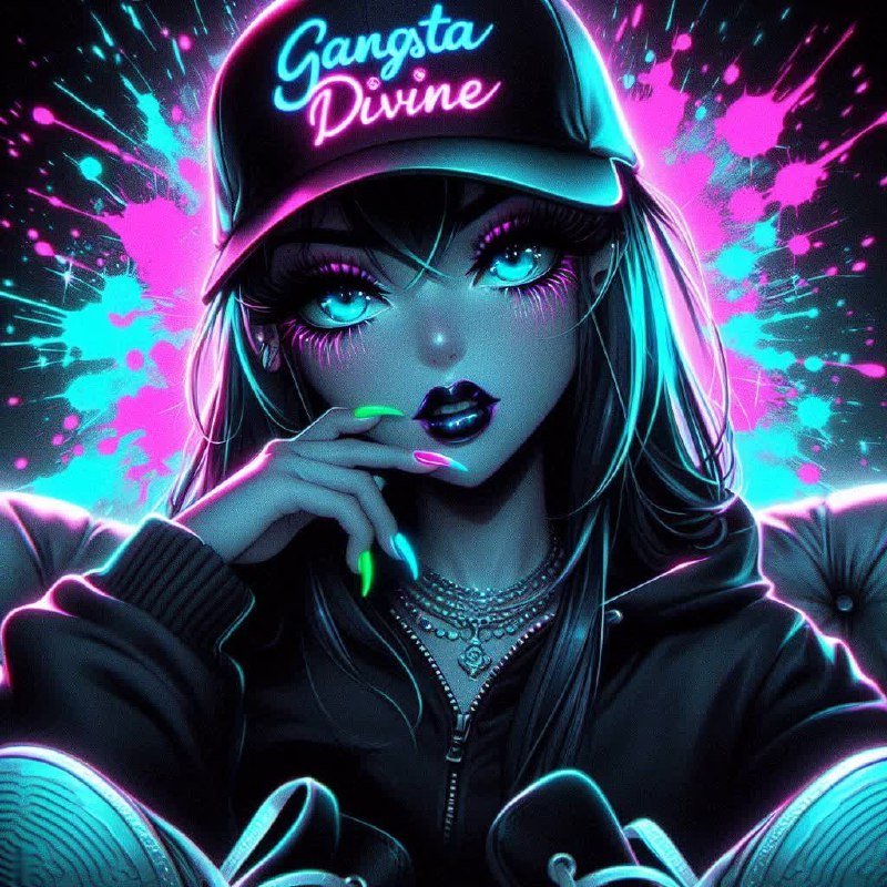 Неоновая гангстерша: взрыв цвета и стиля в анимешном исполнении - Пример работы нейросети Dalle