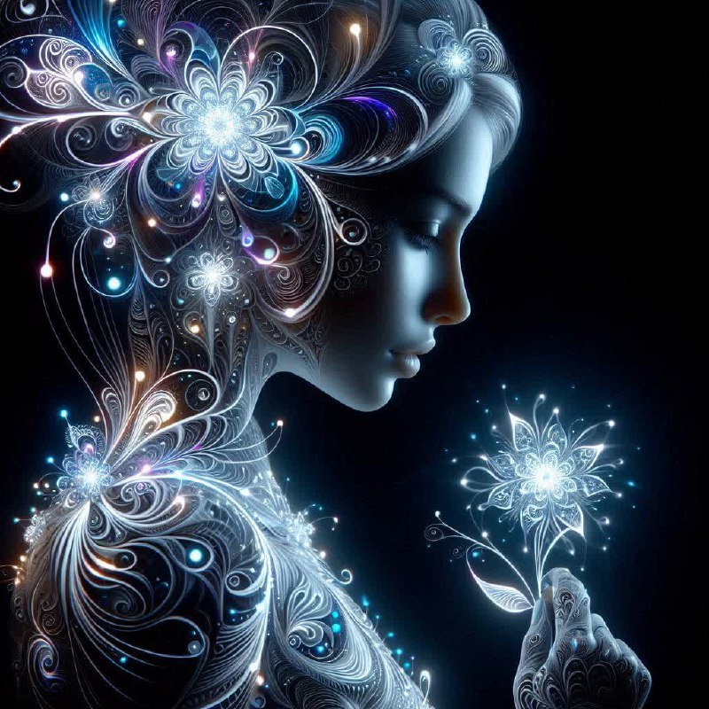 В целом, работа создает атмосферу волшебства, загадочности и красоты, передавая ощущение внутренней гармонии девушки и запечатлевая мимолетность момента в цифровом пространстве. Картинка излучает свет изнутри, что придает образу особую глубину и таинственность, не отпуская взгляд зрителя. Использование нейросети позволило достичь невероятной детализации и реалистичности изображения, делая его визуальной поэмой о красоте и хрупкости.