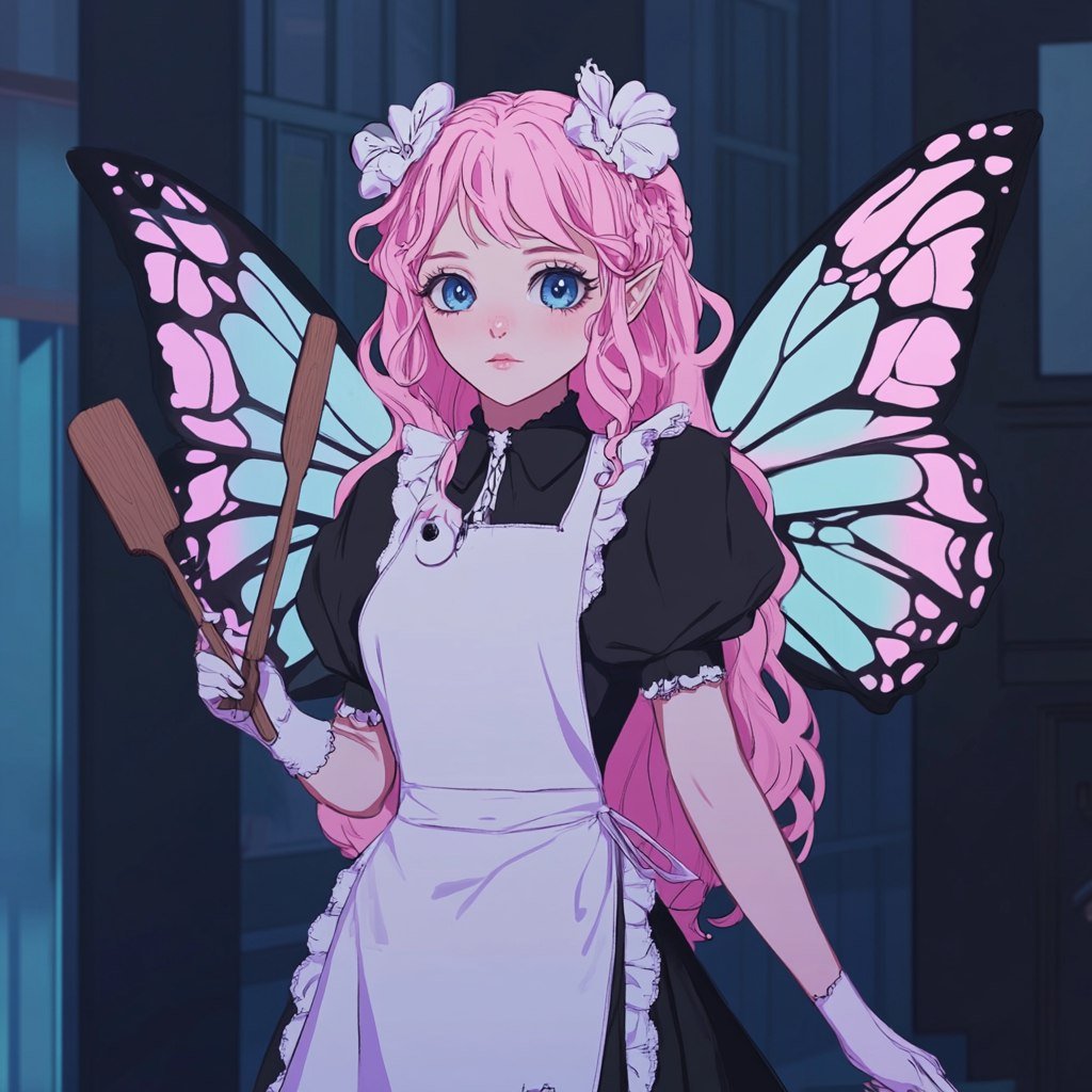 Милая фея в сказочном стиле AFK Arena предстает перед нами в очаровательном портрете. Её крупные крылья бабочки переливаются нежными оттенками, а длинное темное платье контрастирует с белоснежным фартуком, подчеркивающим её невинность и трудолюбие. Яркие розовые волосы обрамляют лицо с выразительными голубыми глазами, полными волшебства и доброты. В руках фея держит деревянную палочку в форме звезды – символ надежды и исполнения желаний. Иллюстрация выполнена в простом дизайне, с использованием мягких пастельных цветов, создающих атмосферу уюта и сказки. Ручная работа чувствуется в каждой детали, что придает персонажу особую теплоту и индивидуальность. Это идеальный образ для создания запоминающегося игрового персонажа или иллюстрации к детской книге, сочетающий в себе миловидность, магию и изящество. Нежная цветовая гамма и аккуратные линии делают этот портрет визуально привлекательным и легко узнаваемым, а стиль AFK Arena добавляет ему нотку популярной игровой эстетики. Фея выглядит одновременно загадочно и дружелюбно, вызывая желание узнать больше о её мире и приключениях. Её образ – это воплощение мечты о сказочном чуде и доброй магии, способное покорить сердца самых разных зрителей