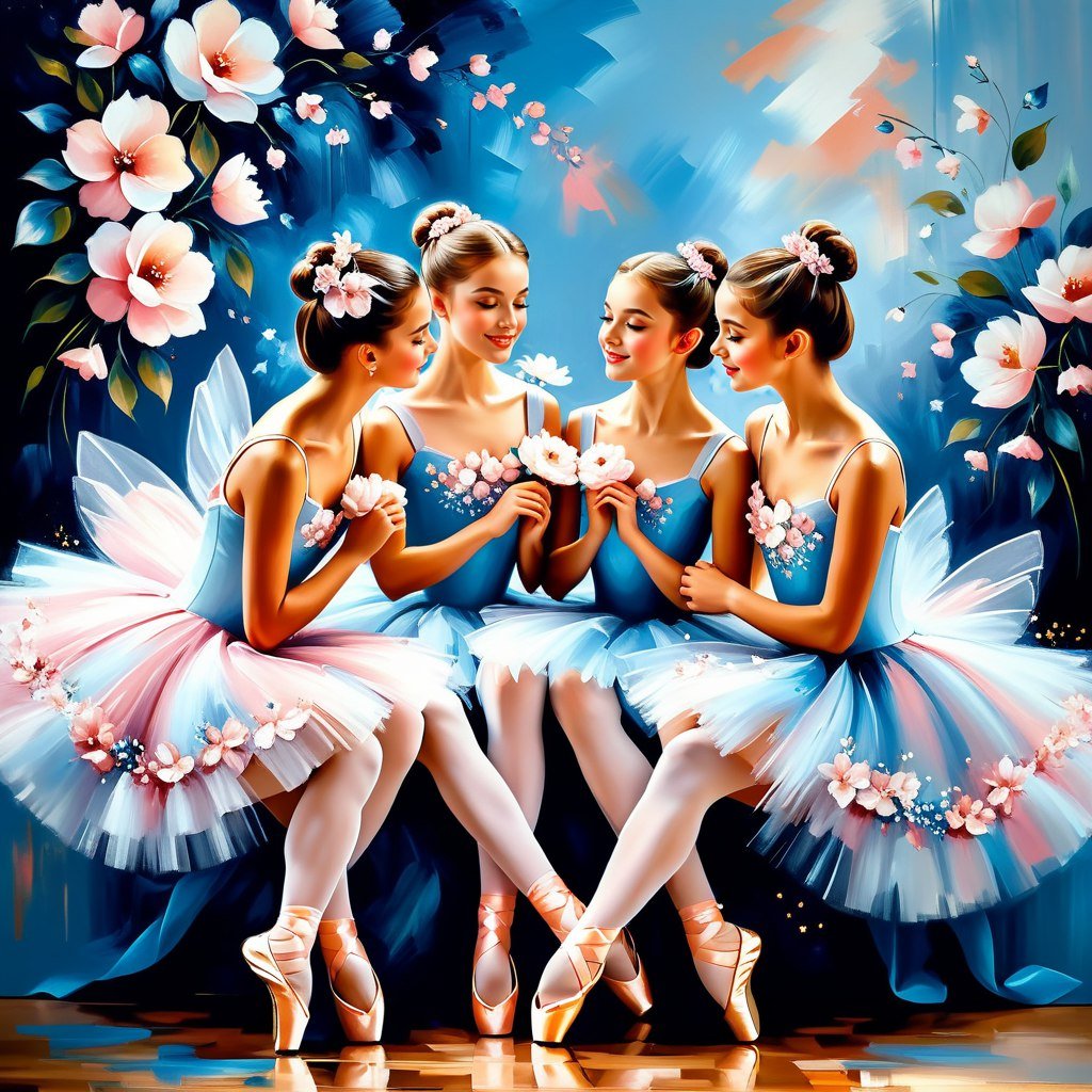 Три балерины в воздушных нарядах: очаровательная сцена из салона - Пример генерации нейросети Stable Diffusion