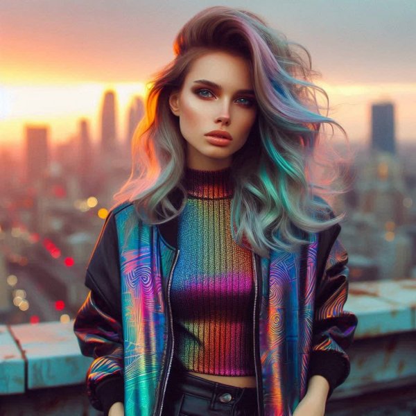 Ночная городская феерия в стиле стритстайл запечатлена на пленку. В центре кадра – ослепительная девушка с длинными, насыщенно-розовыми волосами, воплощающая будущее в своем гладком футуристическом образе. Она восседает на крыше, залитой неоновым светом, словно королева ночного мегаполиса. Ее взгляд скрыт за массивными круглыми солнцезащитными очками, а серебристая мини-юбка подчеркивает ее дерзкий и уверенный стиль. Вокруг раскинулись городские джунгли с яркими граффити, создающими контрастную палитру с мягким пастельным освещением. Картина пронизана атмосферой бунтарства и загадочности, передающей энергию большого города. Высокое качество съемки позволяет рассмотреть каждую деталь – от текстуры одежды до бликов неоновых огней на коже модели. Это не просто фотография, это кинематографичный снимок, погружающий зрителя в мир моды, искусства и ночного города. Кадром хочется любоваться бесконечно, ощущая пульс урбанистической жизни и притягивая внимание к неповторимому стилю главной героини. Вся композиция дышит современностью, смелостью и креативностью, что делает ее поистине уникальной и запоминающейся. Съемка на пленку добавляет снимку особую ностальгическую атмосферу, подчеркивая его художественную ценность