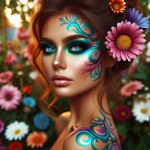 dalle Волшебство пустыни: племенной макияж и дерзкий взгляд девушки. Картинка из нейросети Dalle 3