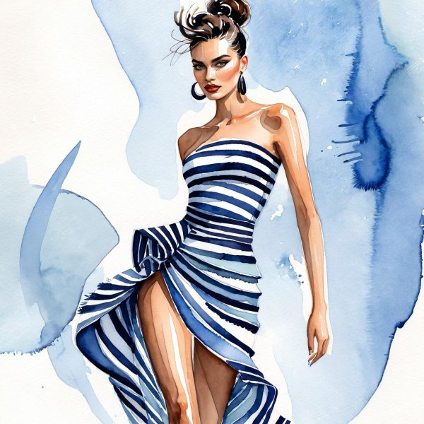 Модный образ: смелое сочетание роскоши и уличного стиля в акварельной живописи - Картинка из нейросети Stable Diffusion