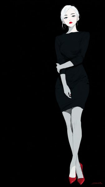 Изысканная иллюстрация модной модели с платиновыми волосами и длинными ногами демонстрирует воплощение элегантности и смелости. Она предстает в облегающем платье-бандаж, подчеркивающем ее безупречную фигуру, дополненном яркими красными туфлями на высоком каблуке. Завершают образ дерзкие рыжие губы и сетчатые чулки, добавляющие нотку провокационности. Простой серый фон позволяет полностью сосредоточиться на красоте и стильности модели, усиливая визуальное воздействие образа. Эта иллюстрация – манифест современной женственности, сочетающий в себе изысканность, уверенность и неповторимый шарм. Каждая деталь тщательно продумана, от безупречного макияжа до идеальной посадки одежды, создавая эффектное и запоминающееся впечатление. Это не просто изображение модели, это визуальная поэма о моде, красоте и силе женского характера. Она излучает уверенность и привлекательность, являясь воплощением современного стиля и элегантности. Иллюстрация передает атмосферу гламура и роскоши, демонстрируя высочайший уровень мастерства художника. Модель выглядит как настоящая икона стиля, задающая новые тренды в мире моды. Её образ вдохновляет на эксперименты и смелые решения в создании собственного неповторимого стиля, подчеркивая индивидуальность и уверенность в себе