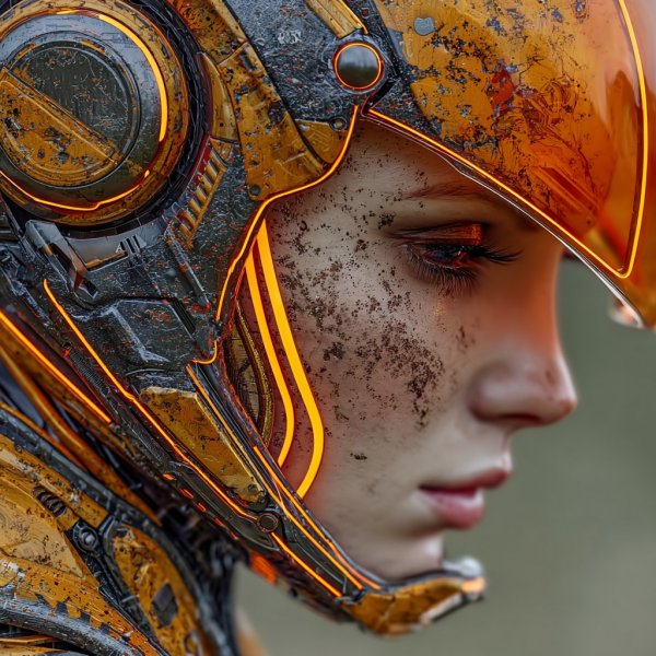 Завораживающий портрет азиатской женщины в стиле киберпанк ар-нуво. Фотореалистичное изображение демонстрирует не только внешнюю красоту, но и внутренний мир – прозрачное стеклянное тело открывает вид на сложный мозг, окрашенный в глубокие красные и черные тона. Металлические элементы и неоновый оранжевый шлем создают футуристическую атмосферу, а высокий контраст подчеркивает детализацию изображения. Необычный акцент – извержение вулкана из одного уха добавляет драматизма и загадочности. На фоне темного серого цвета мягкая улыбка на лице героини придает портрету тонкую эмоциональную глубину. Снято на профессиональное оборудование – Nikon Z 9 с объективом Rodenstock HR Digaron 28mm f/4, что обеспечивает исключительное качество и резкость изображения. Этот цифровой шедевр сочетает в себе передовые технологии и изысканный художественный стиль, создавая неповторимую визуальную историю о силе интеллекта и красоте будущего. Работа выполнена в формате raw с уровнем детализации s 750, что позволяет максимально раскрыть все нюансы композиции и передать уникальную атмосферу кибернетического мира. Это не просто портрет – это погружение в альтернативную реальность, где переплетаются технологии, искусство и человеческие эмоции