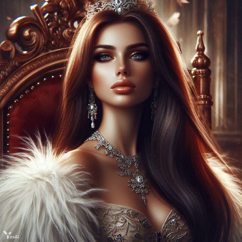 Воплощение царственной красоты и элегантности, эта работа представляет собой ослепительную молодую женщину, облаченную в образ могущественной императрицы. Её прямые каштановые волосы ниспадают волнами, подчеркивая безупречную линию лица и придавая облику аристократическую утончённость. Встречаясь взглядом с зрителем, она излучает уверенность и благородство, достойные правительницы огромной империи. Трон, на котором восседает императрица, выполнен в духе фэнтезийного искусства, создавая ощущение волшебства и нереальности происходящего. Художественный стиль Ли Богл привносит в произведение уникальную атмосферу, характеризующуюся детализированностью, выразительными чертами лица и яркой цветовой палитрой. Каждая деталь тщательно продумана, от изысканного орнамента на одеянии до тонких нюансов выражения лица, создавая неповторимый образ властной и прекрасной императрицы в мире фантазий. Это произведение искусства – ода женской силе, красоте и величию, воплощенная в ярком и запоминающемся образе. Она словно сошла со страниц волшебной сказки, чтобы покорить сердца зрителей своей неземной красотой и царственным достоинством
