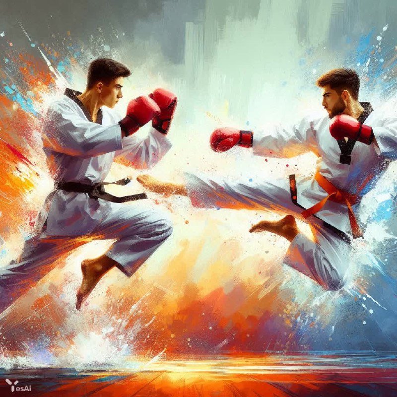 Энергичный спарринг: таэквондо в стиле аниме - Генерация в нейросети Dalle
