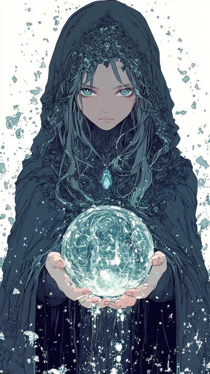 Загадочная некромантка с хрустальным шаром и мистическим сиянием - Картинка, созданная нейросетью Миджорни