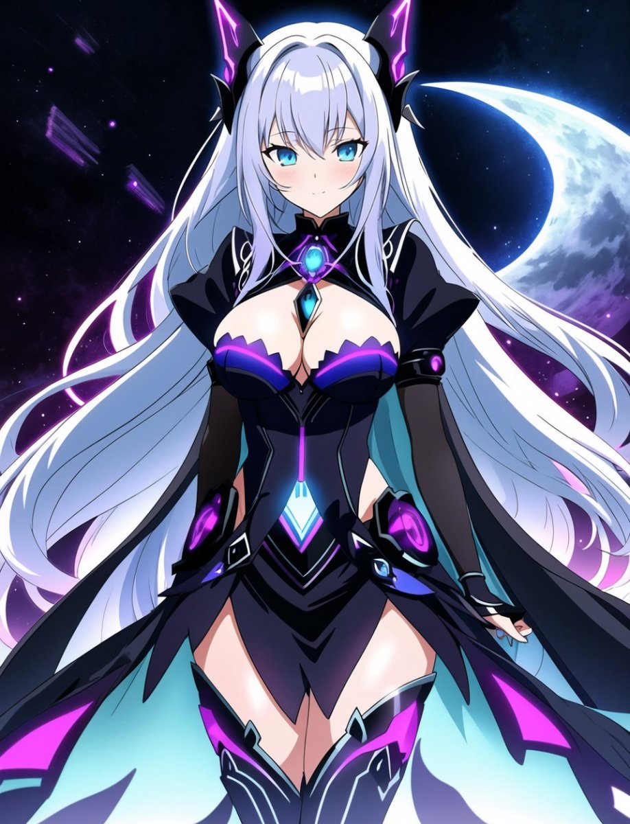 Завораживающая некромантка в темном плаще воплощает собой мистическую красоту и силу. Она окружена танцующими тенями, а мягкий лунный свет подчеркивает ее утонченные черты и детали изысканного костюма сочетающего черный и синий цвета. Вдохновленная образом Риас Гремори, эта девушка-аниме с элементами меха создает неповторимый образ – смесь готической модели и могущественного волшебника. Яркие неоновые оттенки киберпанка оживляют сцену, придавая ей футуристический шарм и глубину. Продуманные пропорции подчеркивают ее грациозность и элегантность. Эта иллюстрация – настоящий гимн темной магии и красоте в сочетании с передовыми технологиями, где каждый элемент призван создать ощущение загадочности и притягательности. Неземная атмосфера окутывает зрителя, погружая его в мир тайн и волшебства, где смертные и мистические силы переплетаются воедино. Ее взгляд полон мощи и мудрости, а аура – загадочна и притягательна. Это не просто иллюстрация – это портал в другой мир, наполненный мрачной романтикой и захватывающими приключениями. Она словно сошла с полотен лучших художников жанра фэнтези, воплощая в себе идеальное сочетание силы, грации и красоты