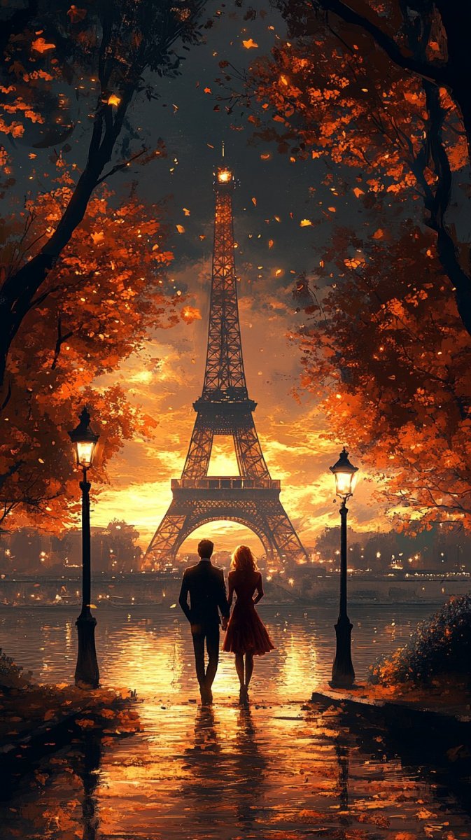 Погрузитесь в чарующую атмосферу вечернего Парижа с завораживающим изображением, где культовый Мулен Руж сияет яркими огнями на фоне романтического заката. Кабаре предстаёт во всей своей красе – его знаменитое красное мельничное колесо притягивает взгляд, а детали архитектуры оживают под светом фонарей. Вдали возвышается величественная Эйфелева башня и другие знаковые достопримечательности города, окрашенные в нежные оттенки заката, создавая неповторимую романтическую палитру. Река Сена плавно отражает мерцание огней Мулен Руж и вечернего города, добавляя динамизма сцене благодаря легкой ряби на поверхности воды. На живописной набережной прогуливаются влюблённые пары, держась за руки и наслаждаясь бокалами шампанского в стильных вечерних нарядах. Уютные столики с креслами, уличные фонари и изящные цветы создают атмосферу тепла и романтики, а лёгкий туман или дымка добавляют глубины и загадочности этому волшебному пейзажу. Изображение передаёт дух праздника, веселья и неувядающей любви в сердце Парижа, воплощая мечту о незабываемом вечернем приключении