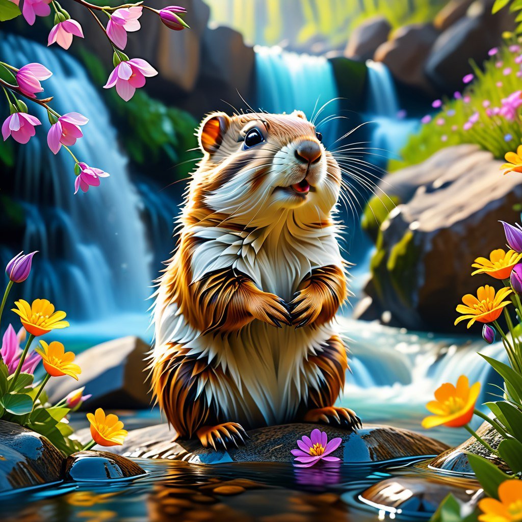 Изящный портрет очаровательного суслика, словно сотканный из калейдоскопа природных красот: буйство стильных цветов, стремительный поток реки, завораживающий водопад – все это сливается в единую гармоничную композицию. Художественная интерпретация сочетает в себе уникальные элементы стиля признанных мастеров Марины Фёдоровой, Алексея Курбатова и Ли Богла, создавая неповторимую атмосферу лёгкости, воздушности и сказочной нежности. Использование техники Bristol добавляет работе особую текстуру и глубину, придавая изображению живописность и реалистичность. Эта картина – настоящий гимн красоте природы и мастерству художников, воплощённый в трогательном образе милого зверька. Она способна пробудить самые светлые чувства, подарить ощущение гармонии и вдохновить на новые свершения. Детализированная проработка каждого элемента подчеркивает талант автора и его умение передать тончайшие нюансы окружающего мира, создавая произведение искусства, которое будет радовать глаз долгие годы. Это не просто изображение, а целая история, рассказанная языком цвета, формы и света