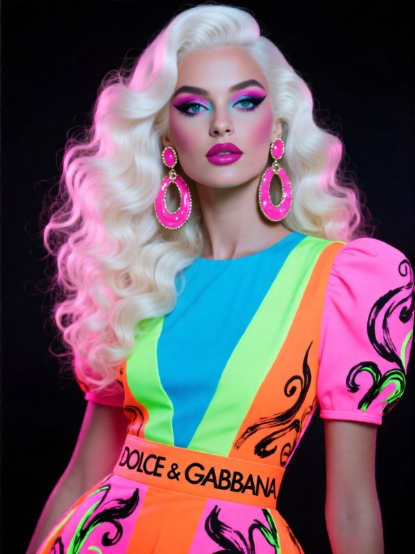 Яркий образ: Неоновый шик в стиле Марракеш от Dolce Gabbana - Пример работы ИИ Qwen