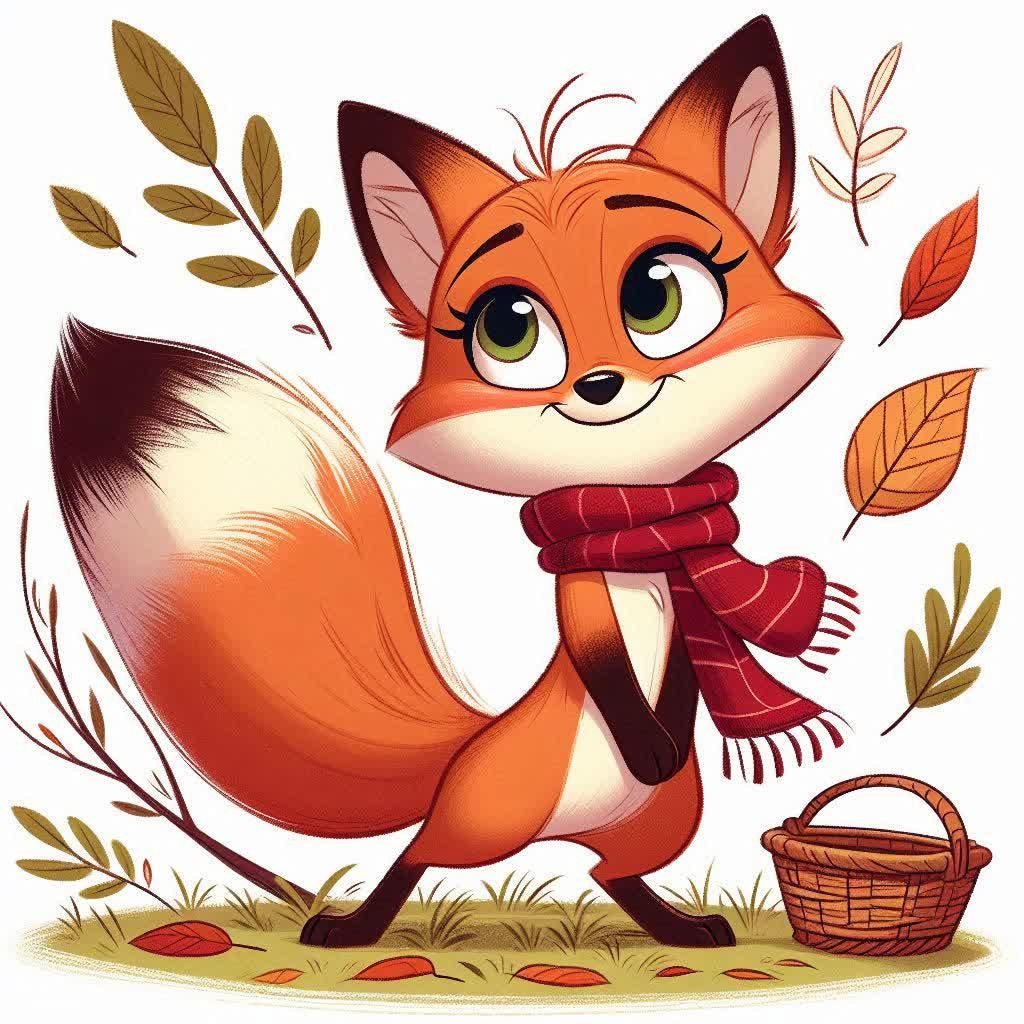 Забавная лисичка в шарфе: осеннее настроение по-диснеевски - Картинка, созданная ИИ Dalle