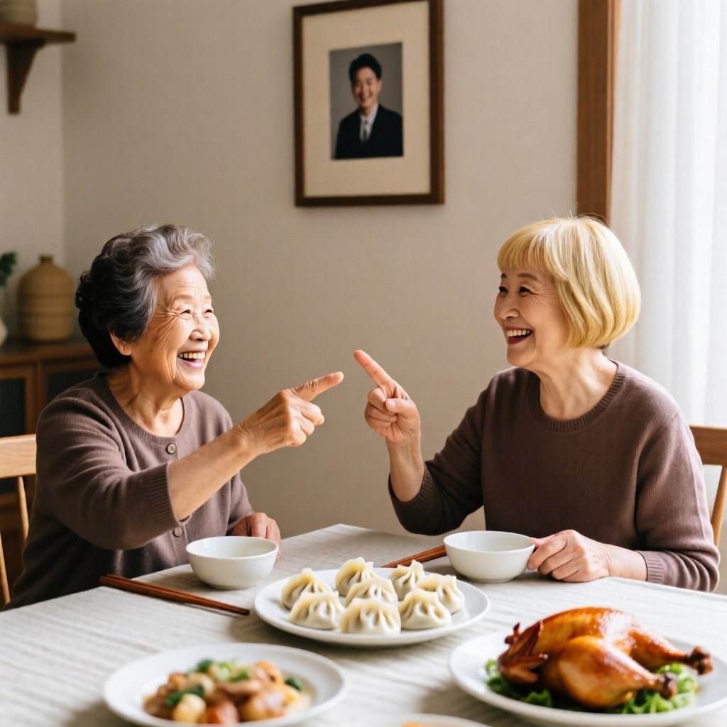 Уютная домашняя атмосфера наполнена радостью и теплом. На столе красуется тарелка с аппетитными варениками, а рядом – две улыбчивые женщины около шестидесяти пяти лет. Одна из них – блондинка с аккуратной короткой стрижкой. В кадр попадает и небольшая курица, добавляя сцене живости и домашнего очарования. Яркий интерьер создает ощущение комфорта и защищенности, словно приглашает заглянуть в мир искренних человеческих отношений и простых радостей жизни. На стене висит картина с изображением раскрытой ладони и отмеченными точками действия – вероятно, вдохновляющее напоминание о жизненных целях и стремлениях, отражающее энергию и целеустремленность, которые присутствуют в этой теплой домашней обстановке. Вся композиция создает впечатление момента, запечатленного с любовью и вниманием к деталям, словно передавая ощущение счастья и гармонии, царящих в этом доме. Это сцена, где прошлое встречается с настоящим, а традиции и новые начинания переплетаются воедино, создавая неповторимую атмосферу уюта и вдохновения. Изображение излучает позитив и доброту, напоминая о важности семьи, друзей и простых радостей жизни