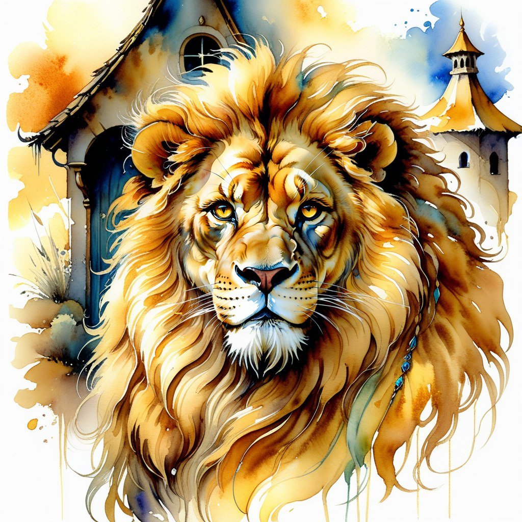 stable diffusion Львиная нежность: золотой страх в акварельном стиле. Изображение из нейронной сети Stable Diffusion