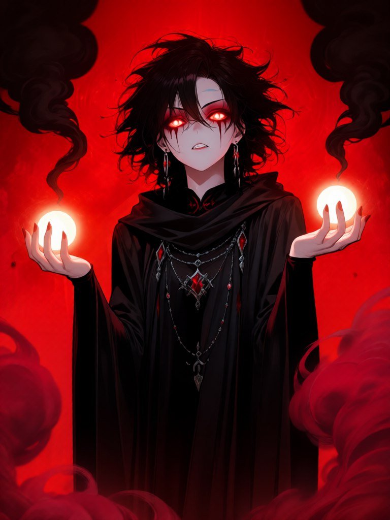 Завораживающая иллюстрация в стиле аниме представляет собой могущественную вампиршу – темную колдунью с растрепанными волосами, полностью поглощенную процессом магического действа. Её взгляд приковывает внимание благодаря яркому свечению глаз, подчеркивающему внутреннюю силу и загадочность персонажа. В руках она поднимает пальцы, словно направляя потоки энергии, вокруг нее парят светящиеся сферы, усиливая ощущение мистической атмосферы. Лицо колдуньи украшено таинственными символами, что добавляет образу глубины и значимости. Фон выполнен в глубоких красных тонах, с легкими завитками дыма, создающими эффект зловещей, но притягательной ауры. Использование LoRA 1914845 позволяет добиться невероятной детализации и выразительности черт лица, а также тонкой передачи эмоций. Вся композиция пронизана напряженной атмосферой, характерной для мира темной магии и вампирского наследия, превращая картину в захватывающее зрелище, полное тайн и опасностей. Это не просто изображение – это окно в мир, где реальность переплетается с мистикой, а сила колдовства способна изменить ход событий. Идеально подойдет для любителей фэнтези, темного искусства и всего необычного