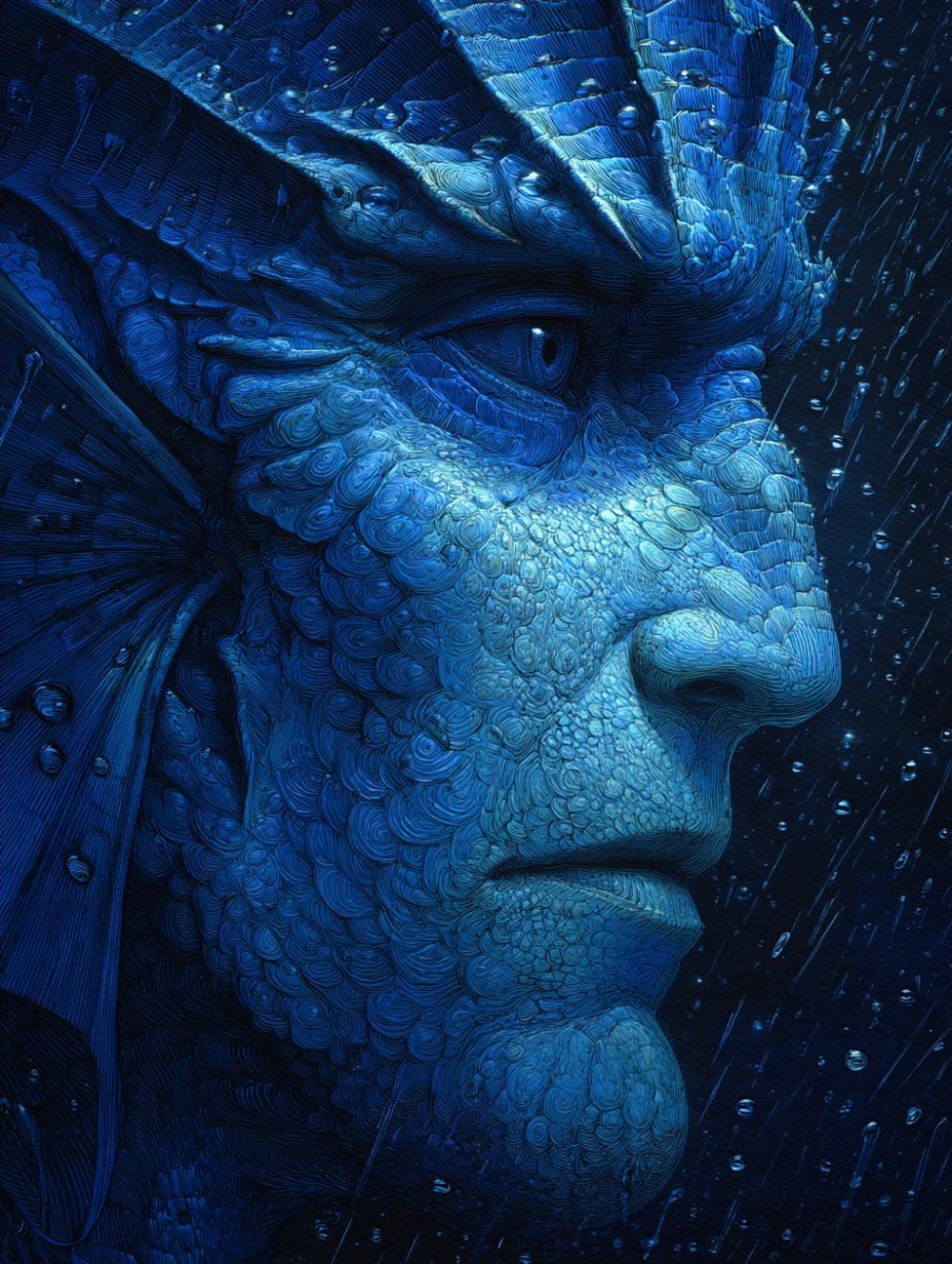 Загадочное фото, будто сорванное с пленки, запечатлевает фрагмент инопланетного русала-мермена. В центре внимания – плечо и торс существа, покрытые чешуей, напоминающей глубоководную рыбью кожу. Видны шрамы, безмолвные свидетели жестокой войны между людьми и представителями иных миров. Атмосфера таинственности подчеркивается светом, пробивающимся сквозь жабры, словно мерцание в дождливую ночь. Стиль фотографии отсылает к виртуозной работе Джеймса Кэмерона, создавая ощущение документальной достоверности и погружая зрителя в мир фантастических существ и забытых сражений. Это не просто изображение, а скорее зацепка для истории, намек на трагические события и существование неизведанных цивилизаций. Каждый шрам, каждая чешуйка – рассказ о потерях и борьбе за выживание в мире, где границы между реальностью и фантазией стираются. Фотография дышит мистикой и вызывает желание узнать больше о происхождении этого необычного существа и причинах его войны с человечеством. В каждом пикселе чувствуется влияние кинематографического гения Кэмерона, что делает этот снимок поистине завораживающим и запоминающимся произведением. Это взгляд в бездну, где скрываются тайны океана и космоса