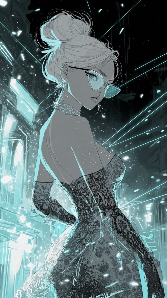 Изысканная иллюстрация в технике чернил изображает ослепительную блондинку с серебряными татуировками, излучающую уверенность и гламур. Она позирует в роскошном вечернем платье, переливающемся в мягком свете, словно сотканном из звездной пыли. Длинные волнистые волосы обрамляют ее лицо, подчеркивая яркий макияж и сверкающие аксессуары, добавляя образу неповторимый шарм. Впечатляющий фон – фешенебельный гала-вечер, полный блеска и шика, где под мерцающим светом собрались элегантные гости. Картина передает атмосферу роскоши и изысканности, создавая ощущение присутствия на светском мероприятии высшего уровня. Внимание к деталям в изображении волос, платья и украшений демонстрирует мастерство художника, стремящегося запечатлеть красоту и элегантность в каждой линии. Эта работа – ода современному гламуру, сочетающая в себе смелые решения в виде татуировок с классической эстетикой вечерней моды, создавая уникальный визуальный образ, который запоминается надолго. Иллюстрация вызывает чувство восхищения и вдохновения, побуждая к размышлениям о красоте, стиле и уверенности в себе. Вся композиция пронизана атмосферой праздника и роскоши, оставляя неизгладимое впечатление от увиденного