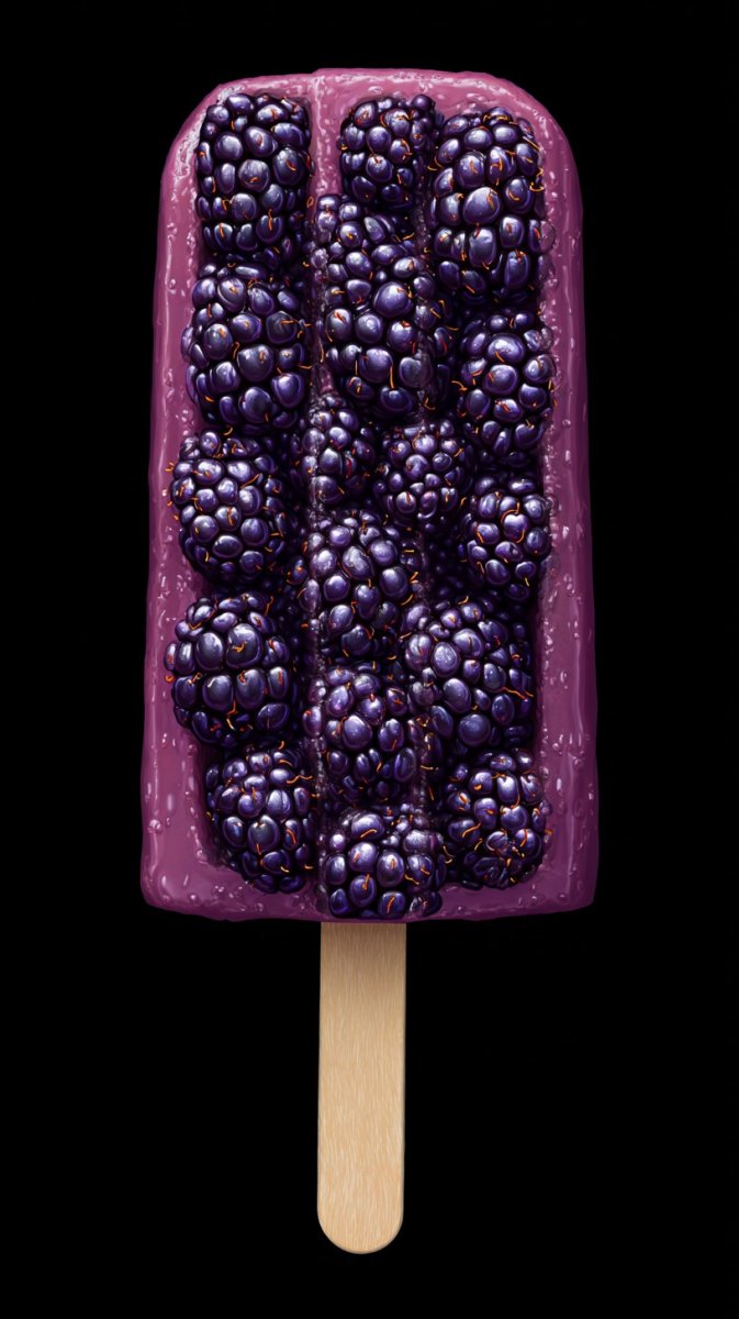 blackberry popsicle wallpaper, purple bg, blackberries scattered around the popsicles, hyper-realistic, delicious textures, food photography in the style of blackberry popsicles, with nikon d850 and af-s nikkor 105mm f/2.8g vr macro lens #role_food