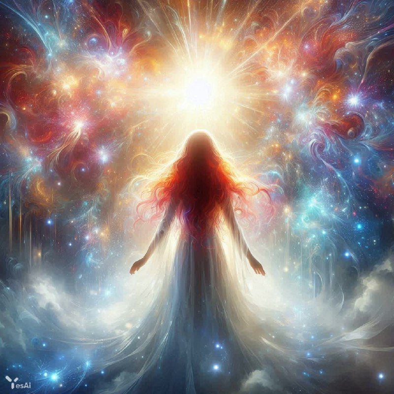 Волшебная феерия света и цвета захватывает воображение в этом гиперреалистичном изображении. Художественное полотно представляет собой завораживающую сцену, где юная девушка с длинными, пышными волосами огненного оттенка стоит под потоками волшебного дождя. Световые блики и сияние окутывают её фигуру, создавая атмосферу таинственности и неземной красоты. Яркие, контрастные цвета переплетаются друг с другом, подчеркивая детализированность изображения и создавая ощущение глубины пространства. Кажется, будто свет исходит изнутри самой девушки, наполняя всё вокруг магической энергией. Изображение выполнено в полный рост, позволяя зрителю оценить всю грацию и изящество её фигуры. Сложная игра света и тени, а также тонкая проработка деталей создают ощущение реалистичности, несмотря на фантастический характер сюжета. Это произведение искусства – настоящий гимн красоте, магии и силе воображения, способный перенести зрителя в мир грез и чудес. Вся композиция дышит гармонией и создает ощущение спокойствия, несмотря на буйство красок и волшебных эффектов. Изображение завораживает своей красотой и мастерством исполнения, являясь настоящим шедевром цифровой живописи