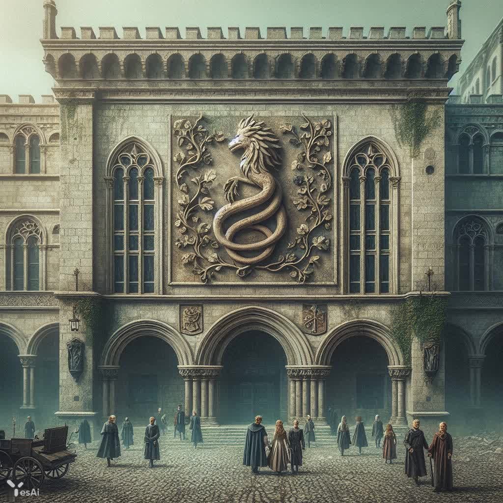 Взгляд на оживленную площадь средневекового города, словно сошедшего со страниц древней легенды. Каменные здания с остроконечными крышами окружают просторное пространство, где кипит жизнь – горожане, облаченные в традиционные одежды той эпохи, спешат по своим делам, создавая атмосферу подлинности и погружая зрителя в прошлое. В центре внимания – величественная ратуша, украшенная гербом с изображением извивающейся лозы, символизирующей процветание и связь с землей. Детализированный фон рисует картину средневековой архитектуры, с узкими улочками, ведущими вглубь города, и высокими башнями, возвышающимися над крышами домов. Этот пейзаж переносит нас в мир рыцарей и магов, где каждый камень хранит историю, а воздух наполнен духом приключений и тайн. Кажется, будто время остановилось, позволяя нам заглянуть в прошлое и ощутить себя частью этого волшебного мира. Ощущение погружения усиливается благодаря вниманию к деталям – от текстуры камня до мельчайших элементов костюмов горожан. Это не просто изображение города, это окно в другую эпоху, где фантазия переплетается с реальностью, а каждый уголок таит в себе неизведанные истории и загадки. Почувствуйте дыхание средневековья, ощутите атмосферу волшебства и окунитесь в мир фэнтезийных приключений