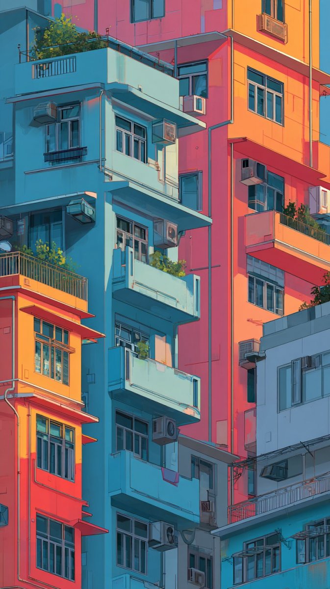 colorful cityscape buildings shapes sizes naive art bright colors playful patterns joyous creativity imagination anna garmashova#role_houses