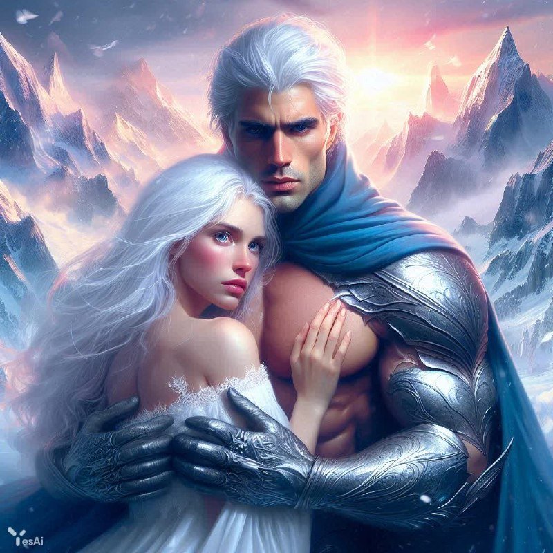 Встреча двух сердец на фоне величественных заснеженных гор – завораживающая сцена из мира фэнтези. Молодая женщина, облаченная в мантию могущественного волшебника с короткой белой шевелюрой, смотрит прямо на зрителя, её взгляд отражает бурю внутренних переживаний и борьбы. В объятиях она держит сильного мужчину в сверкающих доспехах – воплощение защиты и силы. Его руки нежно обнимают талию возлюбленной, а в их глазах читается безграничная любовь, переплетенная с напряжением и ожиданием. Рассвет окрашивает пейзаж в нежные оттенки белого, голубого и розового, создавая атмосферу волшебства и надежды. Картина выполнена в стиле гиперреализма, с потрясающей детализацией и глубиной, позволяя зрителю ощутить каждую текстуру, каждый отблеск света на доспехах и снегу. Эта работа – не просто изображение, это история о любви, долге и внутренней силе, разворачивающаяся в эпическом фэнтезийном мире, где магия переплетается с реальностью, а чувства становятся сильнее любых преград. Погрузитесь в этот мир страсти и героизма, ощутите холод горного воздуха и тепло объятий двух любящих сердец, запечатленных в моменте вечной любви и надежды на лучшее будущее. Эта сцена – квинтэссенция романтики и силы духа, заключенная в завораживающем визуальном повествовании