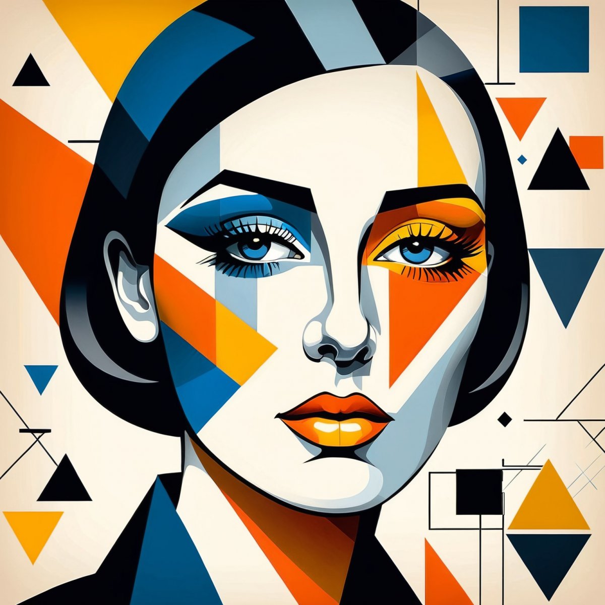stable diffusion Лицо в геометрии: абстрактный портрет в стиле Баухаус и Дадаизма. Нейросеть Stable Diffusion