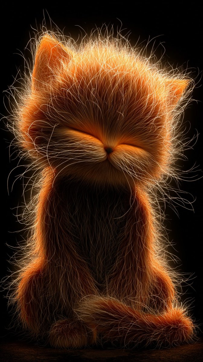 Очаровательное изображение кота, излучающего мягкое свечение в неоневом оранжевом цвете. Это детализированная цифровая живопись, выполненная в технике аэрографии и созданная с использованием ZBrush Central, что подчеркивает мастерство исполнения. Пушистый персонаж держит чашку кофе своими лапками, выражая сонное, но довольное настроение. Идеально подходит для использования в качестве обоев на рабочий стол или фона для iPhone – яркий акцент с милым мультяшным дизайном и чертами мордочки, подчеркнутыми маленьким аккуратным носиком. Сочетание черного и оранжевого цветов создает визуальную гармонию, а рыжие волосы и мех добавляют текстуры и объема. Это не просто изображение кота, это воплощение красоты неоновых котов с добавлением улыбающихся смайликов, что делает его особенно привлекательным и позитивным. Идеальный выбор для тех, кто любит милые изображения животных в ярком и современном стиле, созданный специально в вертикальном формате 9:16. Картина передаёт ощущение тепла, уюта и лёгкой неги, словно приглашая зрителя присоединиться к этому моменту спокойствия и наслаждения чашкой ароматного кофе вместе с этим очаровательным котом-неоном. Изображение обладает высоким уровнем детализации, что делает его идеальным для использования на дисплеях высокого разрешения