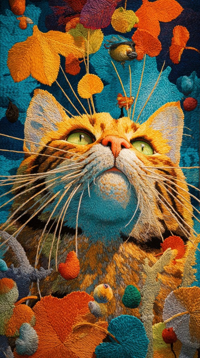 Волшебная сцена оживает яркими красками осени, представляя собой удивительный контраст между величественным котом породы мейн-кун и крошечными человечками, словно сошедшими со страниц сказочной книги. Огромный кот, с его густой шерстью, напоминающей холмистый пейзаж, становится центром притяжения для целой армии маленьких жителей, которых можно сравнить с лилипутами. Они в ярких костюмах весело кружат вокруг кота, словно танцуют в вихре радости и беззаботности. Некоторые отважные путешественники взбираются на его пушистые уши, рассматривая окружающий мир с высоты птичьего полета, будто настоящие исследователи неизведанных земель. Другие же обустраивают шумный лагерь под его длинным, развевающимся хвостом, создавая миниатюрную цивилизацию в тени гигантского зверя. Вся эта фантастическая картина оживает благодаря мельчайшим деталям: игривые мордочки лилипутов, насыщенные осенние оттенки листвы и травы, длинные тени от усов кота, придающие сцене загадочности и глубины. Кошачий взгляд, полный царственного спокойствия и легкого веселья, словно он наблюдает за всем этим представлением как мудрый король над своим необычным королевством. Это удивительное зрелище – воплощение сказочного мира, где доброта и юмор переплетаются с фантазией и волшебством, создавая неповторимую атмосферу радости и умиления. Сцена пронизана легкостью и нежностью, словно приглашая зрителя окунуться в мир грез и приключений