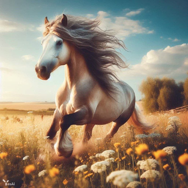 Красная кобылица в движении: символ года и мерцающий горизонт будущего - Результат работы нейросети Dalle 3