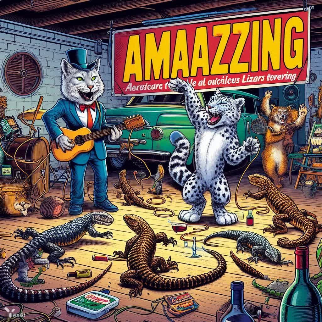 Кот, барс и ящерицы: безумная реклама в гараже - Пример изображения, созданного ИИ Dalle