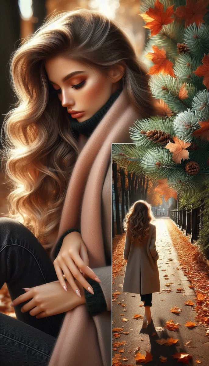 Осеннее настроение: прогулка в парке и нежный женственный образ - Картинка, созданная нейросетью Dalle