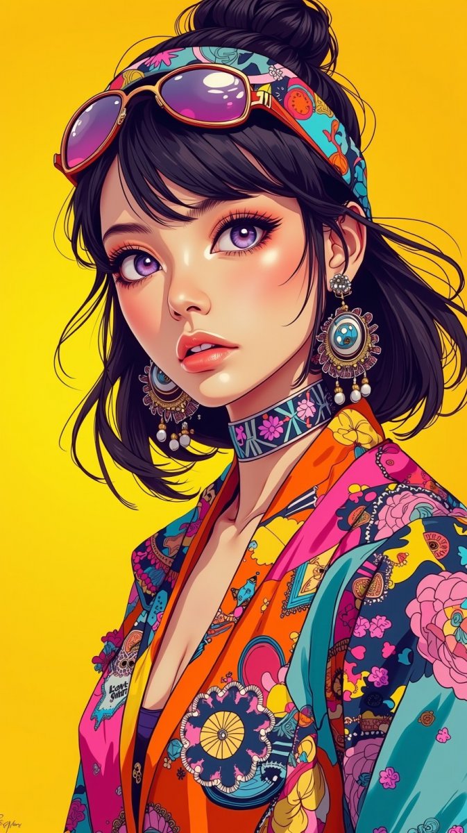 #2 captivating portrait of a fashion model with captivating violet eyes meeting the viewer's gaze, set against a bright solid background that enhances her vibrant, eclectic outfit, crafted in a photorealistic style with a nikon d850 camera and a 50mm f/1.8 lens, showcasing the unique interplay of light, texture, and color, while emphasizing her individuality and confidence. #role_girls