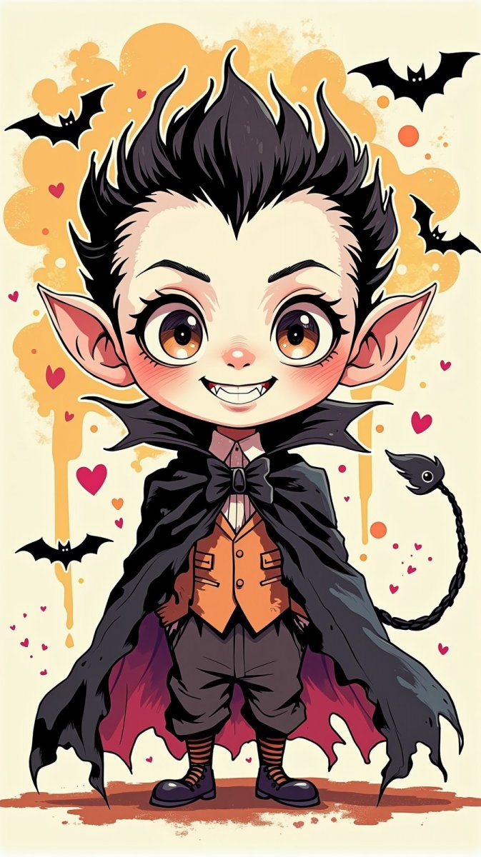 Очаровательный вампир Дракула в мультяшном стиле! Этот яркий и красочный рисунок чернилами представляет собой концепт-арт персонажа с забавным выражением лица и широкой улыбкой. Классический черный плащ, острые клыки и игривый фон из пастельных тонов с летучими мышами и сердечками создают волшебную атмосферу. Иллюстрация выполнена в детальной проработке, что подчеркивает милый и юмористический характер персонажа. Отличный выбор для любителей мультфильмов и фэнтези, а также поклонников Monster High – это забавное воплощение монстра, которое точно вызовет улыбку! Идеально подходит для оформления детских товаров, иллюстраций в книгах или просто как яркий акцент в интерьере. Это не страшный вампир из готических романов, а дружелюбный и веселый персонаж, готовый к приключениям и полным позитива. Невероятно милая иллюстрация, которая подарит хорошее настроение!