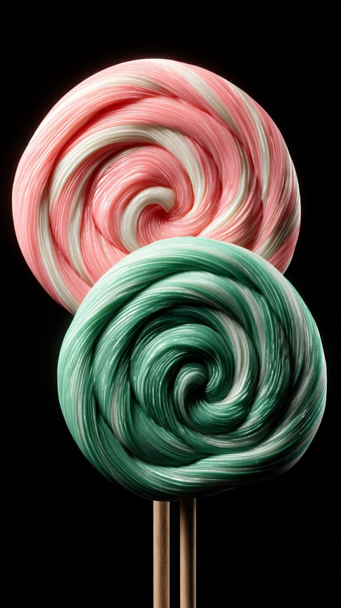 Два аппетитных леденца, один нежно-розовый, другой сочный зелёный, эффектно выделяются на фоне глубокого чёрного цвета. Фотография выполнена в формате HDR с высочайшим разрешением, обеспечивая потрясающую чёткость и детализацию изображения. Исключено любое размытие, благодаря чему каждая текстура выглядит невероятно реалистично. Яркие, насыщенные цвета буквально оживают на экране, создавая ощущение свежести и сладости. Использован передовой метод рендеринга Octane, что позволило добиться гиперреалистичной картинки с максимальной детализацией каждого элемента. Вся композиция передаёт не только визуальную привлекательность, но и тактильные ощущения от прикосновения к гладкой поверхности леденцов. Это произведение искусства в мире фотографии демонстрирует совершенство технологий и мастерство фотографа, создавая поистине завораживающее зрелище для зрителя. Безупречная детализация позволяет рассмотреть мельчайшие нюансы цвета и формы, делая фотографию максимально реалистичной и привлекательной