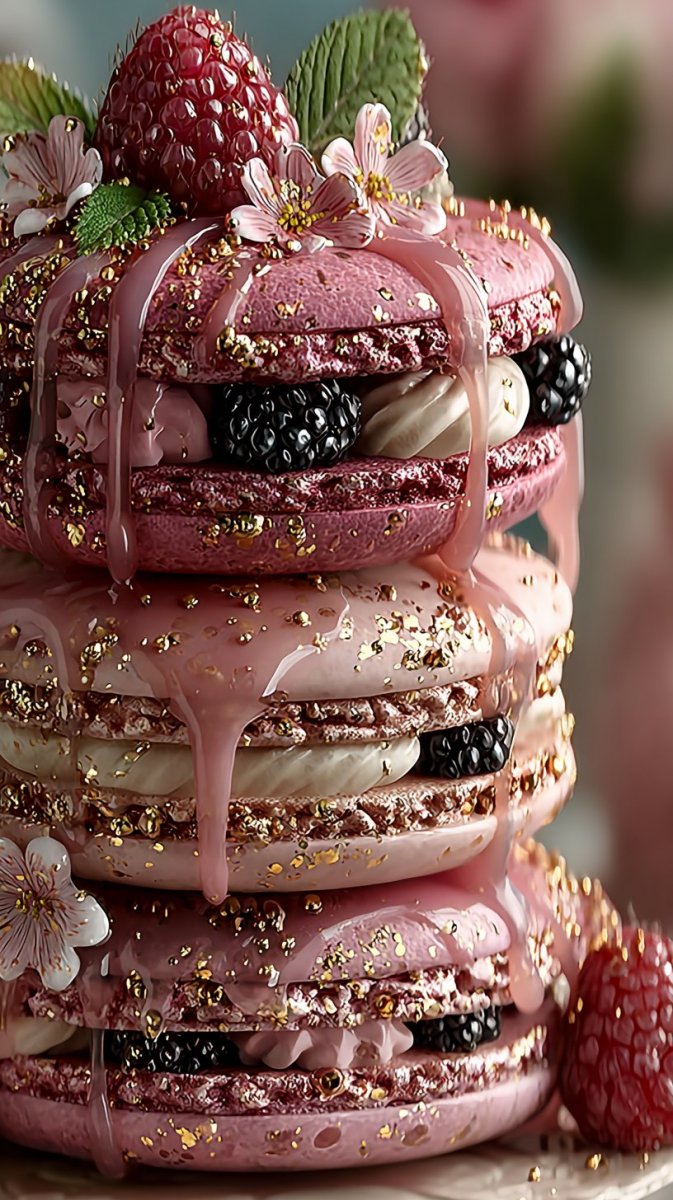 Сочное летнее наслаждение в каждом пикселе. Эта композиция – взрыв ярких красок и нежных текстур, где малина и черника танцуют вокруг изящных десертов. Розовый цвет доминирует, создавая атмосферу легкости и беззаботности, а мягкий свет подчеркивает аппетитный вид фруктов и сладостей. Попкорн с малиной добавляет игривости, а брызги розового молока, напоминающие взрыв энергии, придают динамизм изображению. Детализация поражает воображение: каждый лепесток мяты, каждая частичка золотой пыли на поверхности десертов – все выполнено с невероятной точностью. Расположение макаронс и ягод создает гармоничную и визуально привлекательную структуру. Использование технологии HDR обеспечивает глубокие цвета и реалистичность изображения, а отсутствие размытия позволяет рассмотреть каждую мелочь. Это не просто фотография фруктов и десертов – это произведение искусства, передающее ощущение летней свежести, сладости и радости. Золотистые акценты добавляют роскоши и элегантности, делая эту композицию по-настоящему уникальной и запоминающейся. Вся сцена словно оживает благодаря ярким цветам, сочным текстурам и тщательному подбору деталей, предлагая зрителю окунуться в мир изысканных вкусов и визуальных наслаждений. Это идеальное сочетание фруктов, сладостей и художественного мастерства
