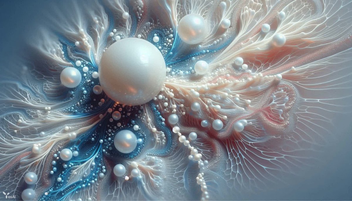 dalle Белый кисель: сюрреалистичная абстракция в 4D и акварели с жемчужными каплями. Картинка из нейронной сети Dalle