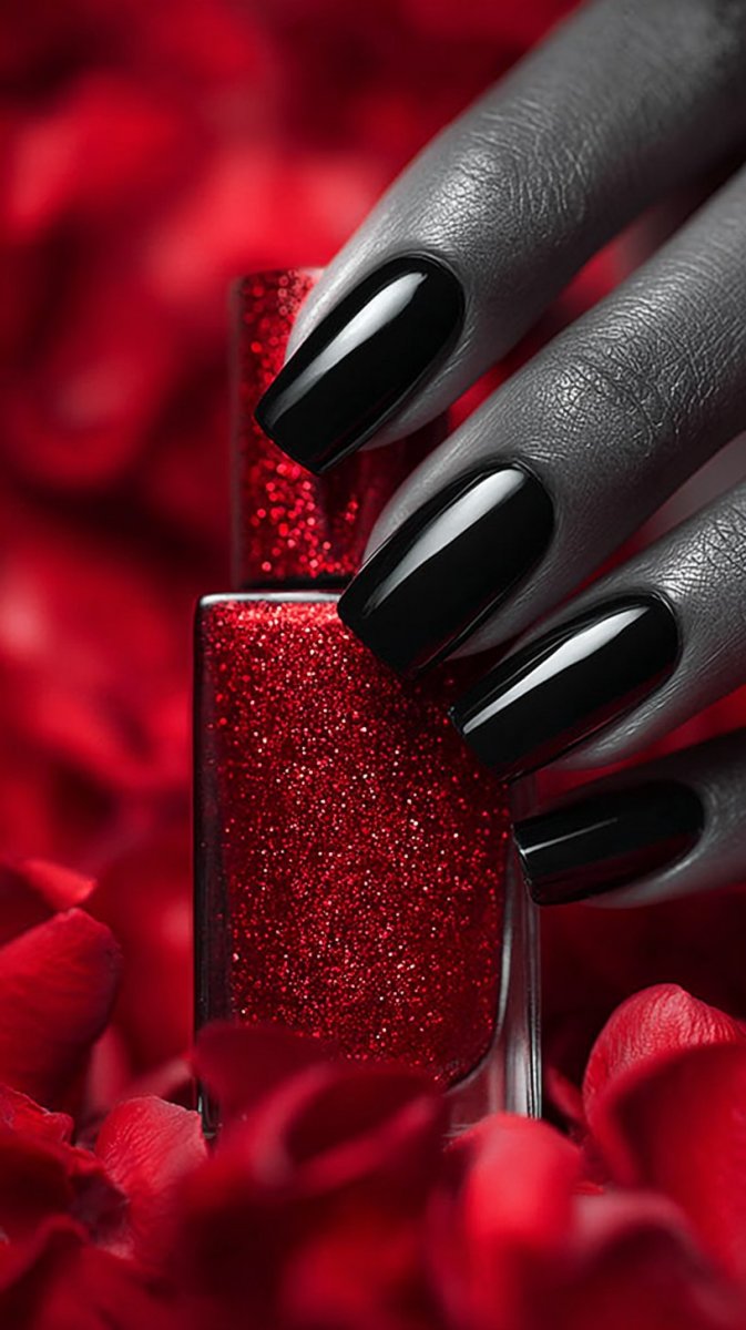 Таинственное очарование черного – воплощенное в визуальном искусстве. Это не просто изображение, а глубокое погружение в мир контрастов и чувственности. В центре внимания – завораживающий образ горящего пламени на губной помаде, словно символ страсти и неугасаемой энергии. Лепестки, деликатно переплетающиеся в композиции, добавляют динамики и создают ощущение пульсирующей жизненной силы. Акцент на симметрии подчеркивает гармонию и баланс, а изящная рука, держащая кулон в форме сердца, наполняет сцену романтикой и нежностью. Глянцевый черный маникюр создает эффектный акцент, добавляя образу загадочности и глубины. Интенсивность цвета и безупречная гладкость отражают стремление к совершенству и элегантности. Каждое движение, каждый оттенок тщательно продуманы для создания неповторимой атмосферы – сочетания силы, страсти, любви и таинственности. Это визуальная ода красоте в ее самых разных проявлениях, приглашающая зрителя погрузиться в мир чувств и эмоций. Изображение излучает уверенность и соблазнительность, оставляя неизгладимое впечатление своей мощью и эстетикой. Черный цвет выступает здесь не просто как тон, а как символ власти и утонченности, подчеркивая индивидуальность и неповторимость образа