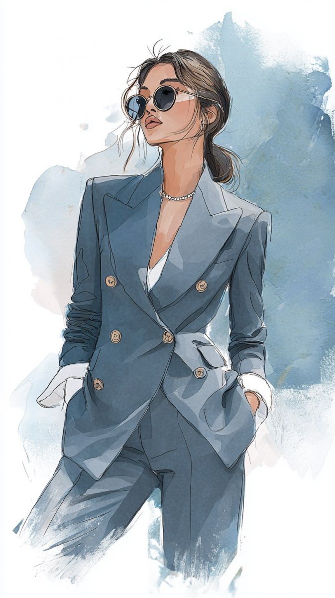 Изысканная иллюстрация в технике чернил вдохновленная народным искусством представляет собой уникальное сочетание модных домов Giorgio Armani и Jean-Paul Gaultier. В центре внимания – элегантная женщина, облаченная в безупречно скроенный двубортный костюм из светлого серого шерстяного материала, что отсылает к минимализму Armani. Однако костюм преображен дерзкими вырезами и яркой полосой, проходящей вдоль рукава – явным признаком эксцентричного стиля Gaultier. Простой жемчужный ожерелье и крупные солнцезащитные очки дополняют образ, подчеркивая непринужденную утонченность модели. Ее взгляд выражает уверенность и спокойствие в солнечном городском саду. Эта работа – визуальный гибрид классической элегантности и авангардного дизайна, где строгость формы смягчается игривыми деталями, создавая неповторимую эстетику современного искусства. Композиция передает ощущение свободы самовыражения и смелого сочетания стилей, воплощая дух моды как формы личного заявления. Иллюстрация – это не просто изображение одежды, а скорее портрет личности, обладающей безупречным вкусом и способной гармонично соединять противоположности. Каждая деталь продумана до мелочей, создавая целостный и запоминающийся образ