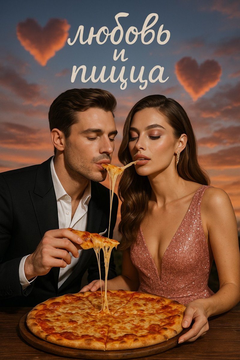 Романтика заката: пицца любви и стильные образы. Генерация из нейронной сети Sora Image
