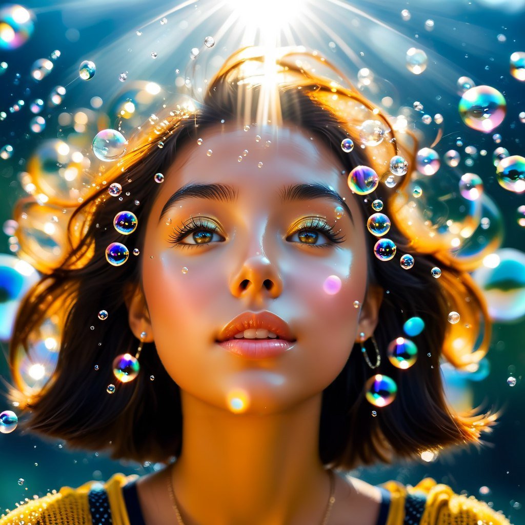 Солнечные блики и игривые пузырьки: милый сюрреалистичный момент - Пример работы ИИ Stable Diffusion