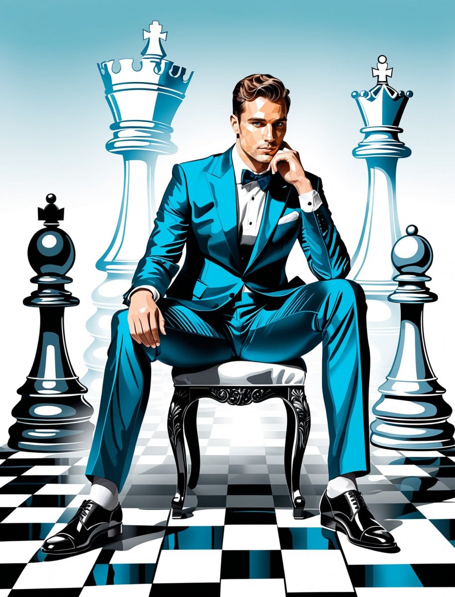 stable diffusion Мужчина на шахматном троне: игра с пространством и временем. Изображение из нейросети Стейбл Дифьюжн