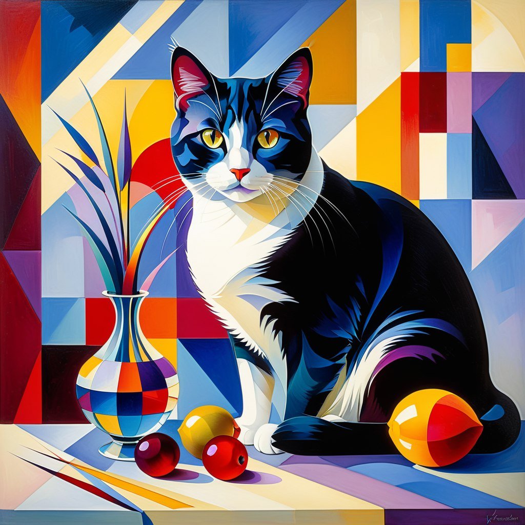 Изысканное сочетание цифрового искусства и ботанической живописи, вдохновлённое новаторским стилем Василия Кандинского и тонкой манерой Георгия Курасова. Композиция представляет собой завораживающий натюрморт с изображением кота, выполненный в духе минимализма и пронизанный элементами фэнтези. Прозрачность и многослойность создают ощущение глубины и объёма, а богатая палитра включает нежные оттенки синего, фиолетового, серого и кремового, дополненные акцентами бордового, оливкового, жёлтого цветов. Картина излучает атмосферу спокойствия, изысканности и утончённой гармонии, предлагая зрителю погрузиться в мир грёз и эстетического наслаждения. Использование различных техник и цветовых сочетаний позволяет передать тонкие нюансы настроения и создать неповторимую визуальную симфонию. Это произведение – ода красоте природы и искусства, воплощённая в современном цифровом формате. Невероятно деликатное взаимодействие света и тени добавляет композиции реалистичности и объёмности, а плавные переходы цветов создают ощущение лёгкости и воздушности. Каждая деталь продумана до мелочей, чтобы передать всю полноту эмоций и впечатлений