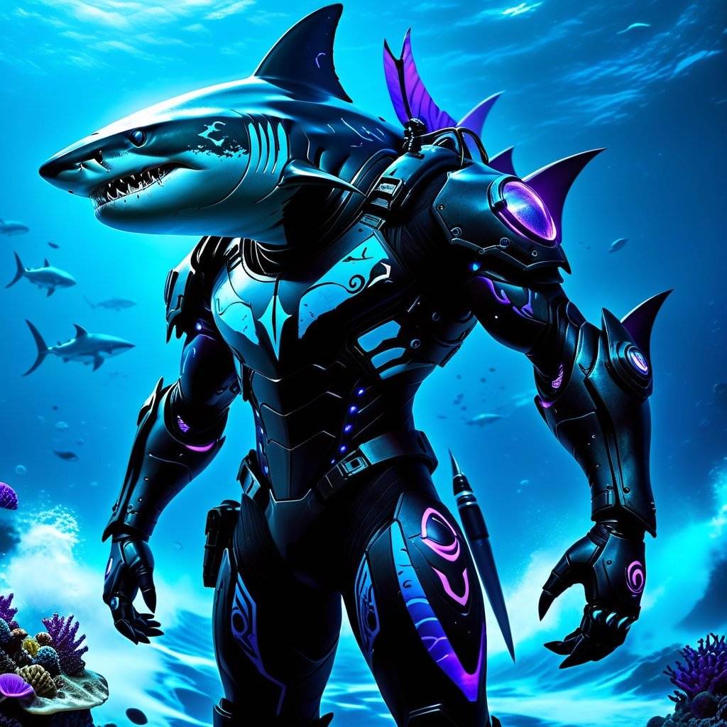 Этот образ воплощает собой загадочного лидера повстанцев, чья внешность и экипировка источают мощь и таинственность. Высокий и жилистый, он излучает ауру непокорности и решимости, словно выкованную в самых суровых условиях. Его тело украшено биолюминесцентными полосами, напоминающими причудливые татуировки, мерцающие холодным сиянием голубых и пурпурных оттенков – это одновременно и символ его принадлежности к тайному ордену, и свидетельство пережитых испытаний. Глубоко посаженные глаза, полностью лишенные зрачков и напоминающие хищный взгляд акулы, выдают в нем хладнокровие и проницательность. Он видит сквозь ложь и обман, оценивая ситуацию с бесстрастной логикой. Его доспехи – это не просто защита, а произведение футуристического искусства, вдохновленное глубинами океана. Белый символ наутилуса, гордо красующийся на груди, указывает на его связь с древними знаниями и загадочной силой, скрытой в морских пучинах. Этот лидер – не просто воин, он – воплощение надежды для угнетенных, маяк во тьме для тех, кто потерял веру. Его внешний вид отражает его внутреннюю силу: сочетание хрупкости и стойкости, мрачности и великолепия. Он готов сражаться до конца за свободу своего народа, невзирая на жертвы и опасности. В его облике чувствуется связь с неизведанными глубинами космоса и древней мудростью океана, делая его поистине уникальной и запоминающейся фигурой в мире научной фантастики. Его история наверняка полна трагических событий и героических поступков, а его имя будет высечено золотыми буквами в анналах истории восстания. Он – воплощение надежды, символ борьбы и вечный страж справедливости